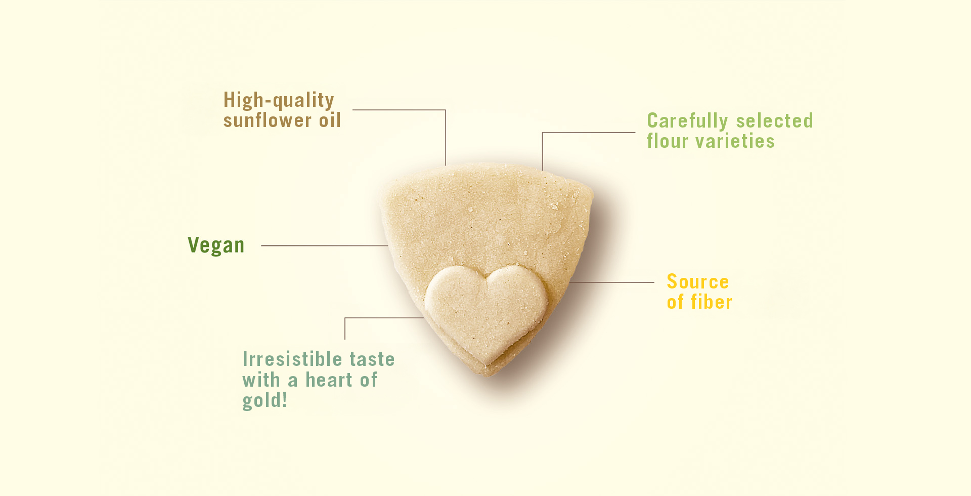 65 % Wheat flour*, 20 % sunflower oil*, 18 % raw cane sugar, 0.3 % lemon oil*, sea salt.